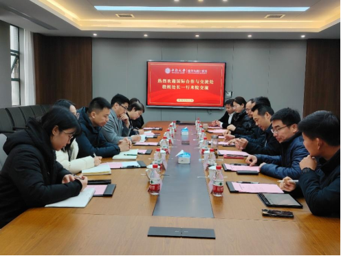 3月4日下午,学校国际合作与交流处殷刚处长一行来我院调研交流,学院领导班子成员出席座谈会,会议由学院副院长(主持工作)刘源远主持。