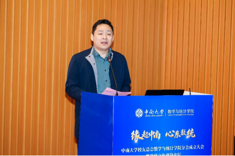 焦勇祝贺beat365官方网站校友分会成立,向广大校友介绍了学校发展取得的成就。他指出,学校始终坚持立德树人根本任务,构建了特色鲜明的学科体系,师资队伍建设成效显著,在服务国家战略需求方面取得了一系列重要突破。这些成就的取得,离不开广大校友的长期支持。他强调,数学学科作为学校“双一流”建设的重要组成部分,正处于重要发展机遇期。学校将进一步加强基础学科建设,推动学科交叉融合,不断提升人才培养质量和科技创新能力。他希望,学院校友分会充分发挥桥梁纽带作用,凝聚校友力量,促进共同发展;搭建合作平台,推动资源共享;传承母校精神,助力学院建设。