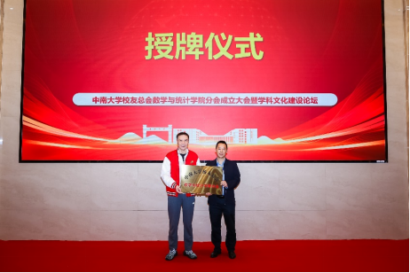 成立大会当天,学院还举办了“心系中南,根在数理”基石揭幕仪式,并共同见证了学院应数851班、85级经济数学研究生班等校友代表捐赠的礼物。