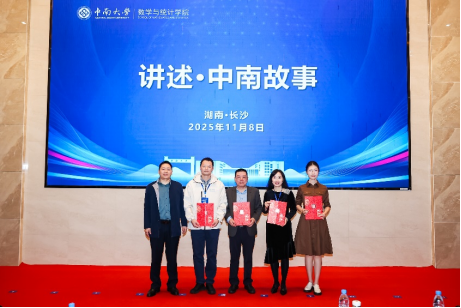在“讲述·中南故事”环节,焦勇为学院主题宣讲团成员颁发聘书。4位校友代表、教师代表和在校学生代表先后登台,围绕《根植中南叶茂,情系数统源长》《我们是谁,从哪里来,去向何方——大学教师的“三问”与成长》《数学之光,照亮我的路与远方》《乘势驭智,中南共生》主题展开分享。