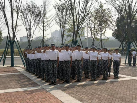 经过前两天基础训练,新生们的队列动作已初具规范。上午,到达训练场地后,教官领队伍复习昨天学过的动作要领,随后练习“敬礼与礼毕”动作。训练间隙,各连队组织了拉歌、互动活动,此起彼伏的歌声与笑声不仅缓解了训练疲劳,也让新生们在集体互动中快速拉近距离,增强了连队凝聚力。