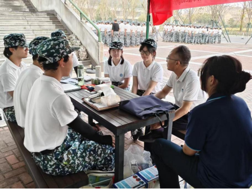 下午,教官带领同学顶着烈日苦练齐步行进与立定、正步前进与立定。每一个动作都承载着同学们的汗水与付出。即使汗水打湿衣衫,模糊视线,也没有一人放弃。