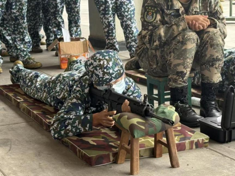整个打靶考核有序进行,全部考生采用卧姿有依托射击。等候中的同学或相继坐下,脑中回顾着握住枪支的要点,或起身活动热身,以应对接下来的考核。枪鸣声落,成绩实时记录,绝大多数同学以标准的卧姿完成了打靶任务,做到了真正的“凯旋”。