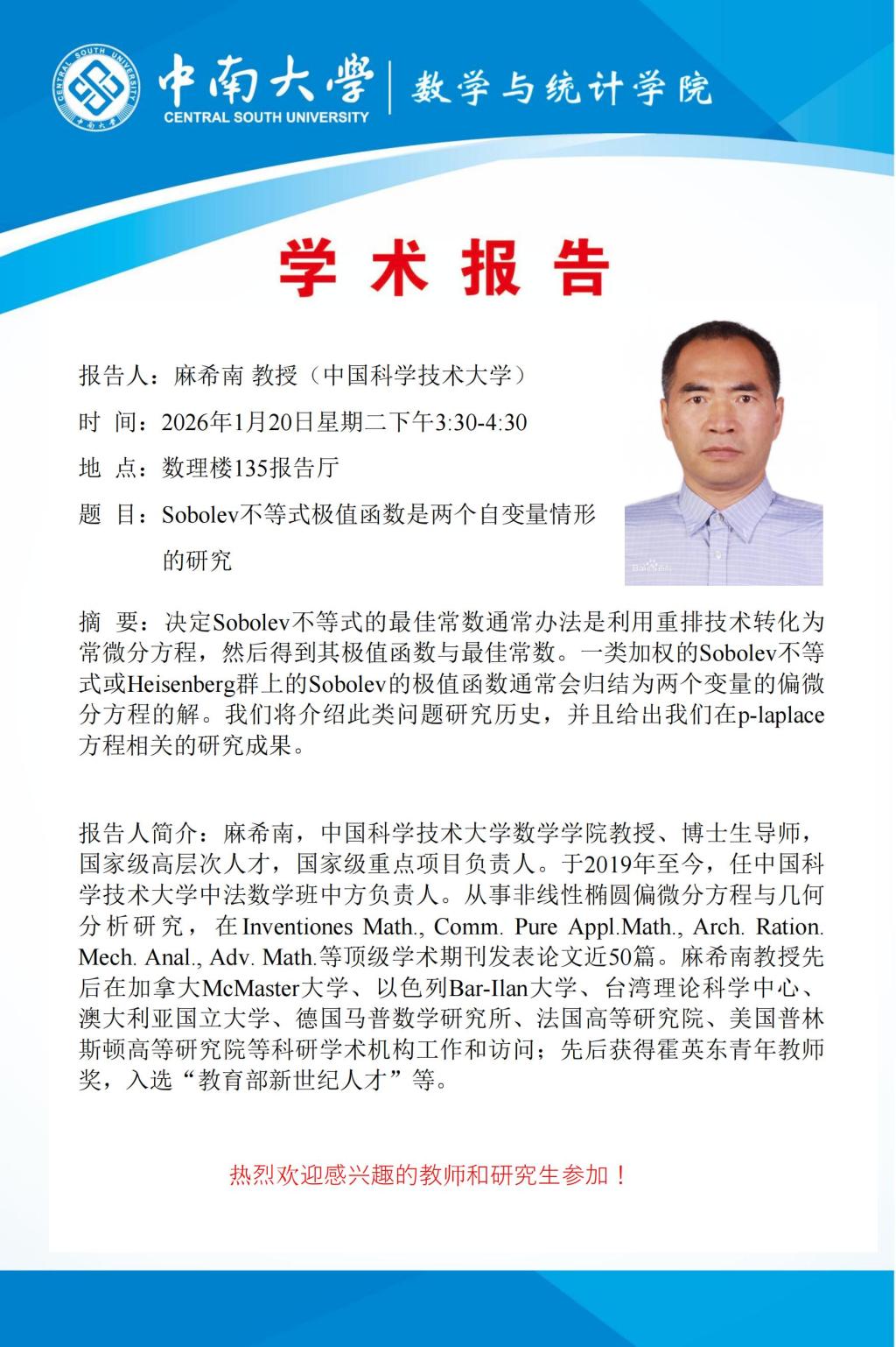 麻希南教授学术报告